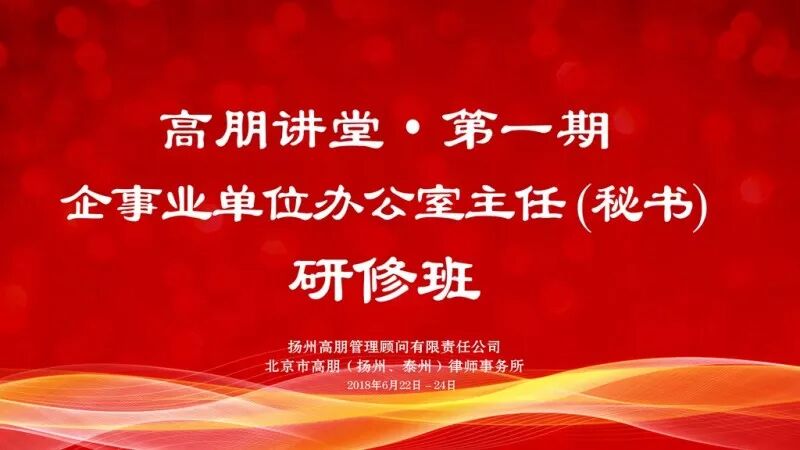 高朋讲堂第二期办公室主任(秘书)研修班计划在8月中旬举办,尽请期待。